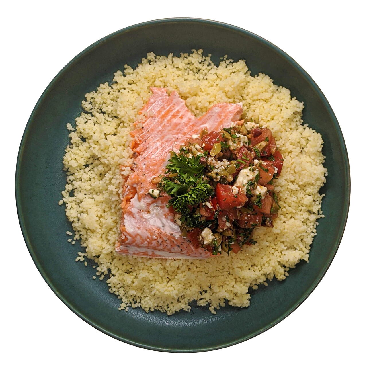 Mediterranean Salmon Couscous : How To Make Pan Fried Salmon With Mediterranean Couscous And Cucumber Salad Adzvice / Carefully remove the salmon strips to a plate, then add the couscous to the veg left in the pan.. Stir the tomatoes, lemon juice, 1 tablespoon of oil and the chopped coriander into the couscous, then season to taste with salt and black pepper. Next, add cherry tomatoes and red onion to the same bowl as the cucumbers. Season with salt and pepper. Serve with couscous on the side and a green salad and you're good to go. Reduce heat to medium and repeat with the remaining 1 tablespoon oil and fennel.